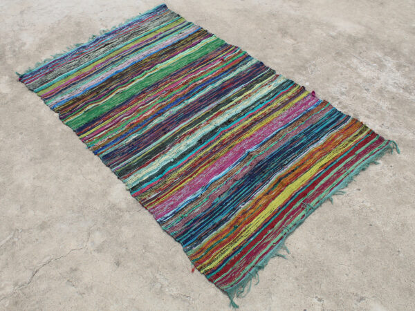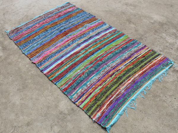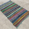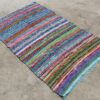 Handmade colorful chindi floor rag rug. This Indian chindi will add color and personality to any room with a well-chosen decorative rugs This beautiful colorful chindi can be used in bedrooms, living rooms, couches, benches or wherever you would like. Color: Multicolor Material: Cotton, Recycled Fabric Due to nature of fabric and handmade there are threads coming out and many knot on the rug These rag rugs are made from fabric scraps and thread. Each piece unique and one of kind. You will get the similar product. Due to nature of fabric and handmade there are threads coming out. Dry Clean Only