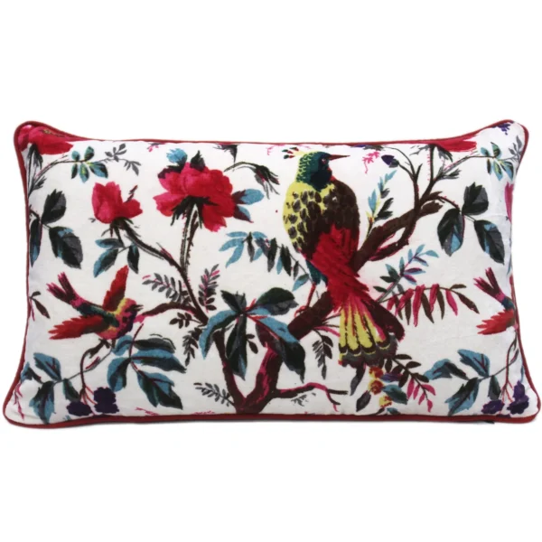 Transform your living space with this exquisite velvet throw pillow cover from Mam Treasures. Featuring an enchanting floral and bird design, this decorative cushion cover brings a touch of bohemian elegance to any room. The handcrafted Indian artistry showcases intricate details on luxurious velvet fabric, creating a stunning visual impact on your sofa, bed, or favorite reading nook. This colorful accent piece seamlessly blends traditional craftsmanship with contemporary boho-chic style, making it perfect for those who appreciate unique, artistic home decor. The cover’s versatile design complements various interior styles, from modern to eclectic. Please note that this listing is for the cushion cover only. Add this beautiful piece to your home decor collection and watch it become a conversation starter while adding warmth and character to your space.